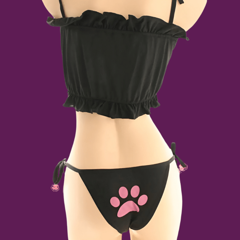 Purrfect Ensemble: Comprising panties, a bra, headband, and a neck ring, this outfit is crafted for a complete and irresistible cat transformation.